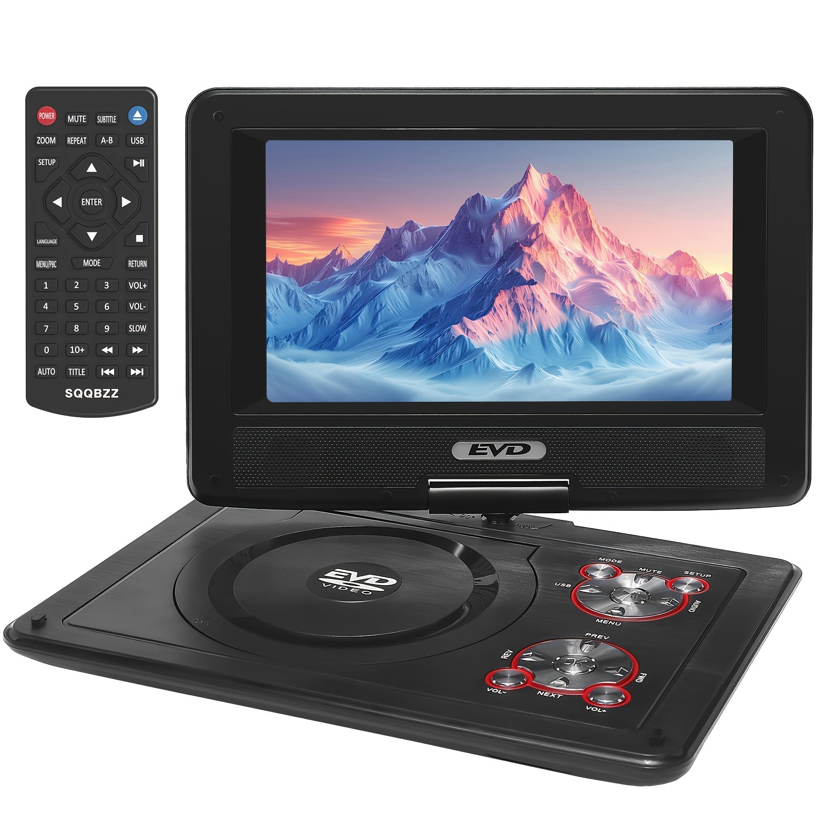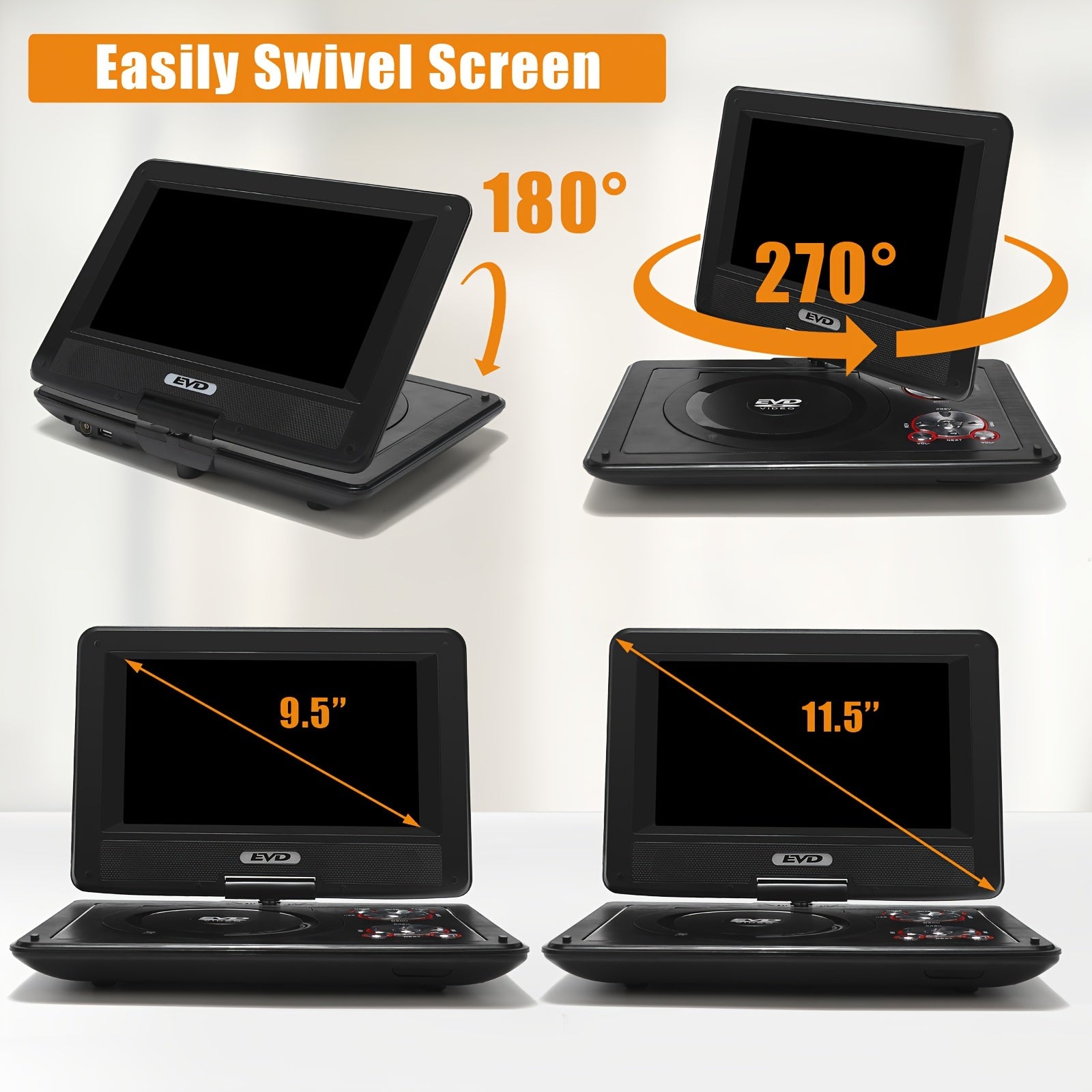 11.5" Portable DVD Player, 9.5" Swivel Screen, 5Hr Battery, Car/Home, CD/DVD/USB/SD, Region Free – Black