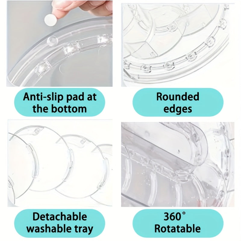 360° Rotating Storage Tray – Clear Plastic Kitchen Organizer for Cabinet, Fridge