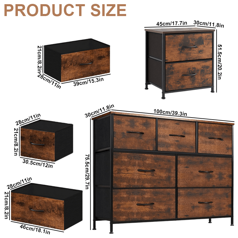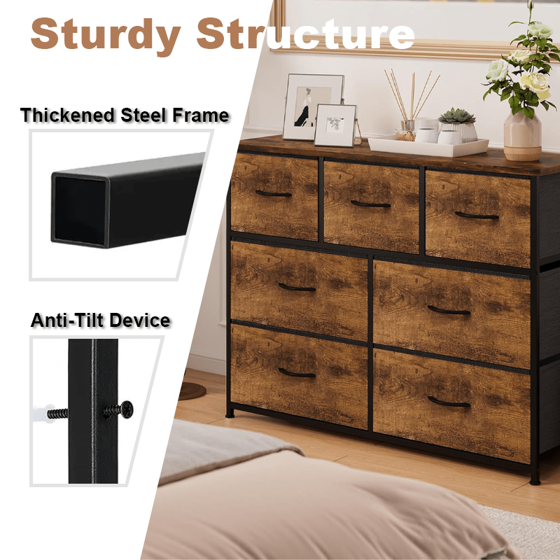 ▪ 7-Grid Fabric Drawer Design – Perfect for organizing clothes, accessories, toiletries, and small household items.
