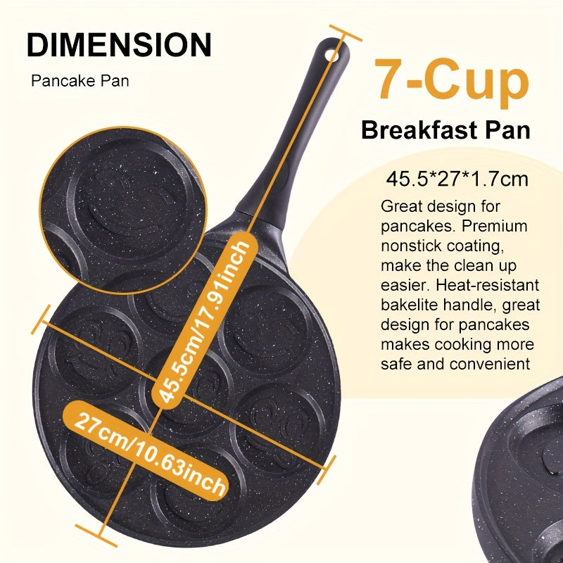 7-Hole Nonstick Pancake & Crepe Pan – Detachable Handle, Gas Stove & Oven Safe