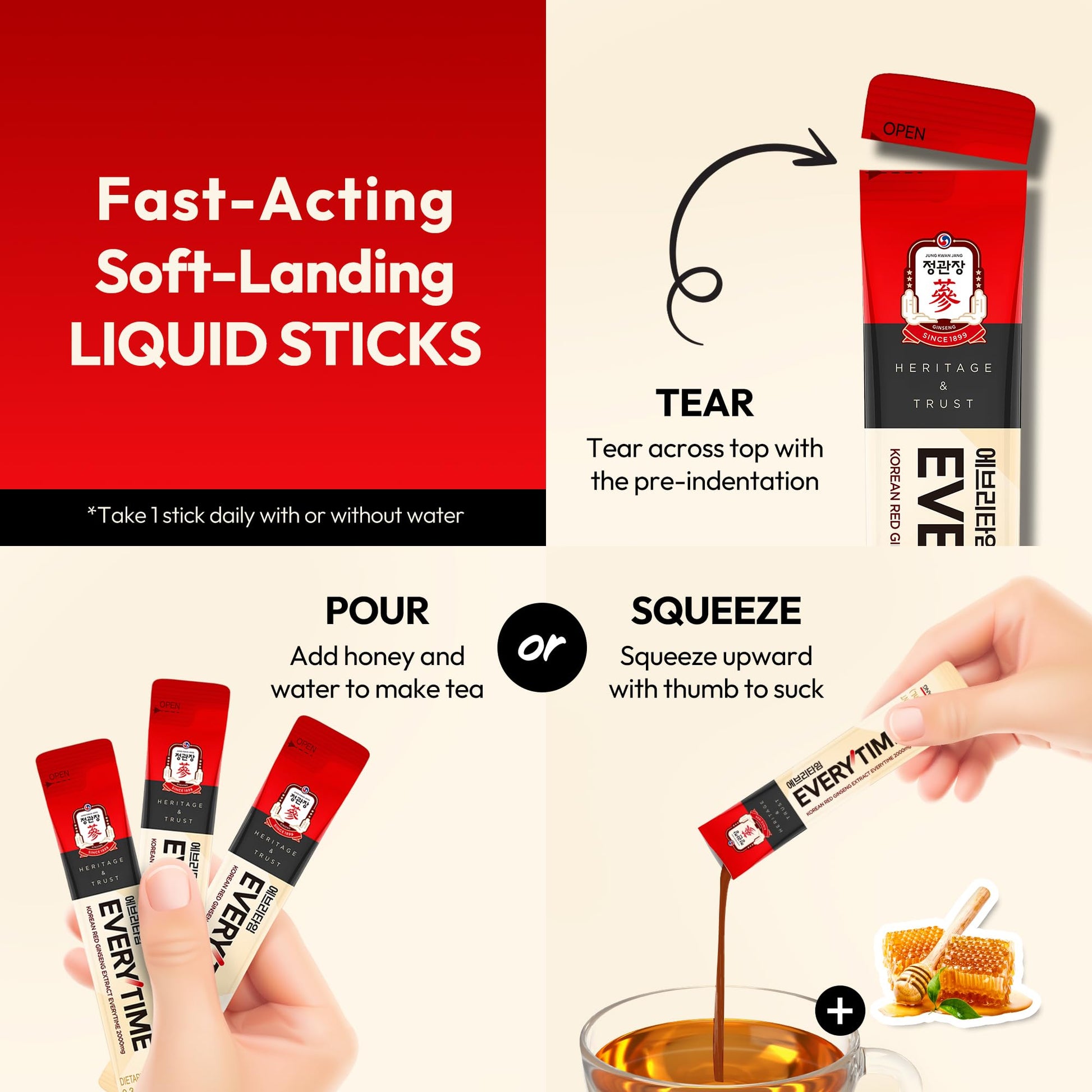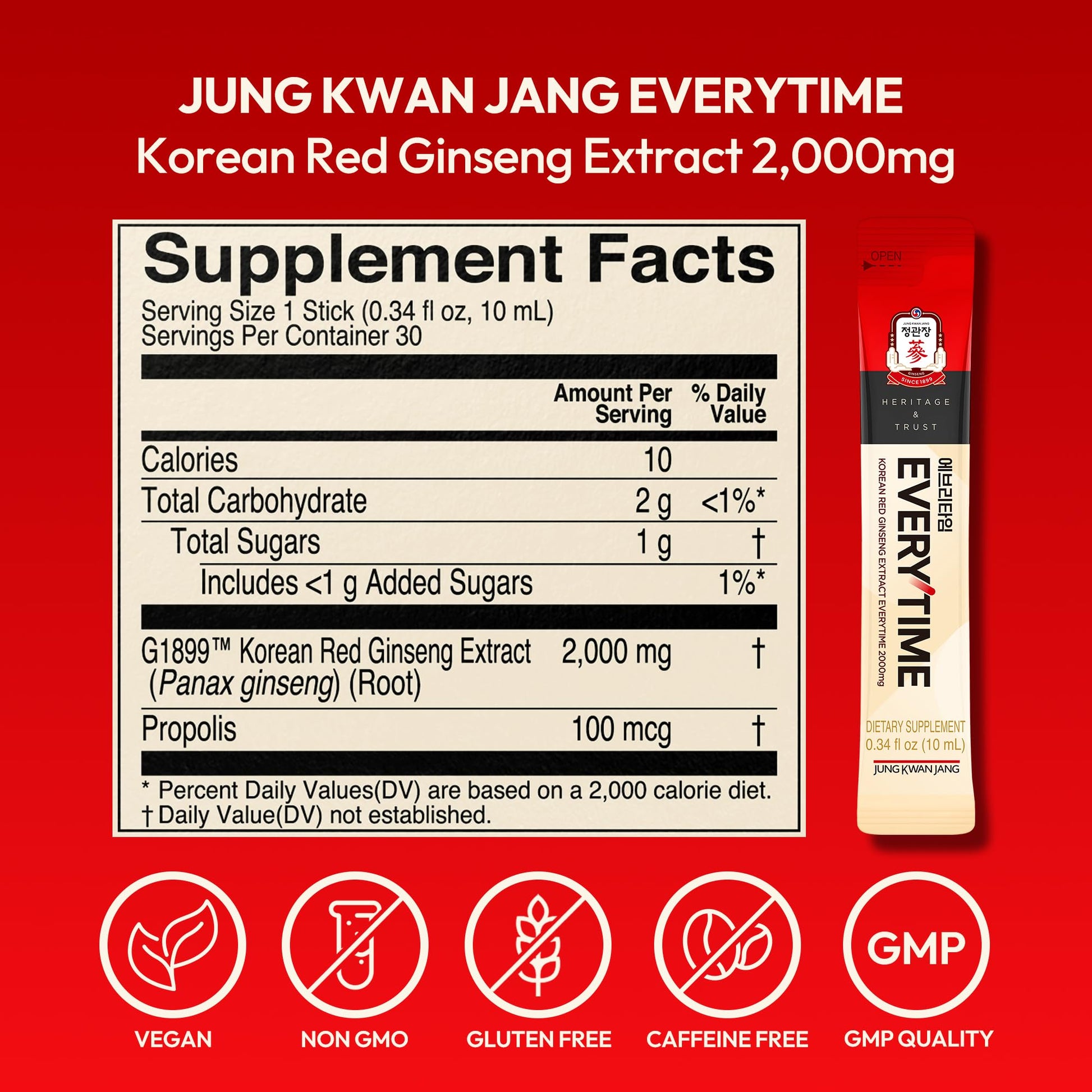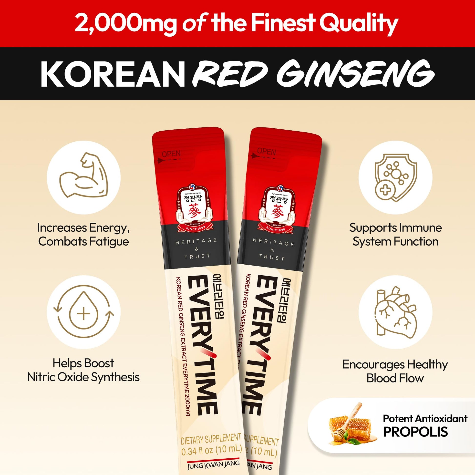 Jung Kwan Jang Everytime – Korean Red Ginseng Energy Sticks (2000mg, 10 Sticks)