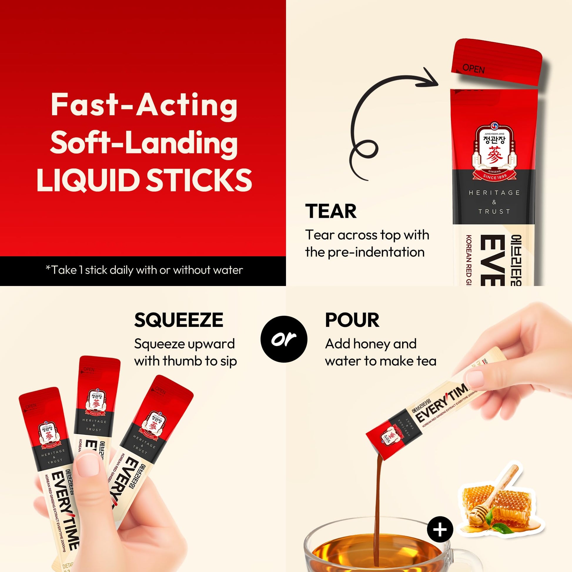 Jung Kwan Jang Everytime – Korean Red Ginseng Energy Sticks (2000mg, 30 Sticks)