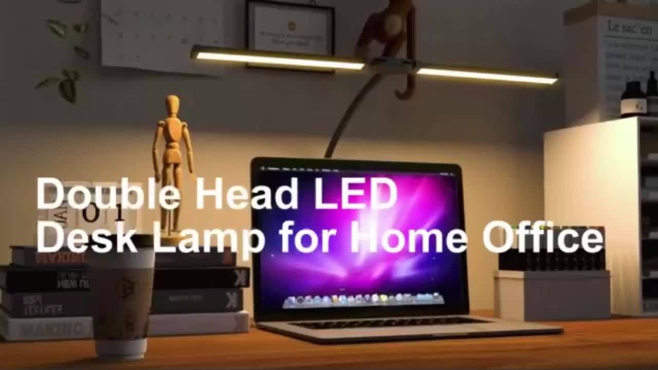 LED Desk Lamp Dual Head Adjustable Gooseneck USB Powered Anti-Glare Metal