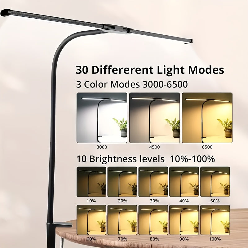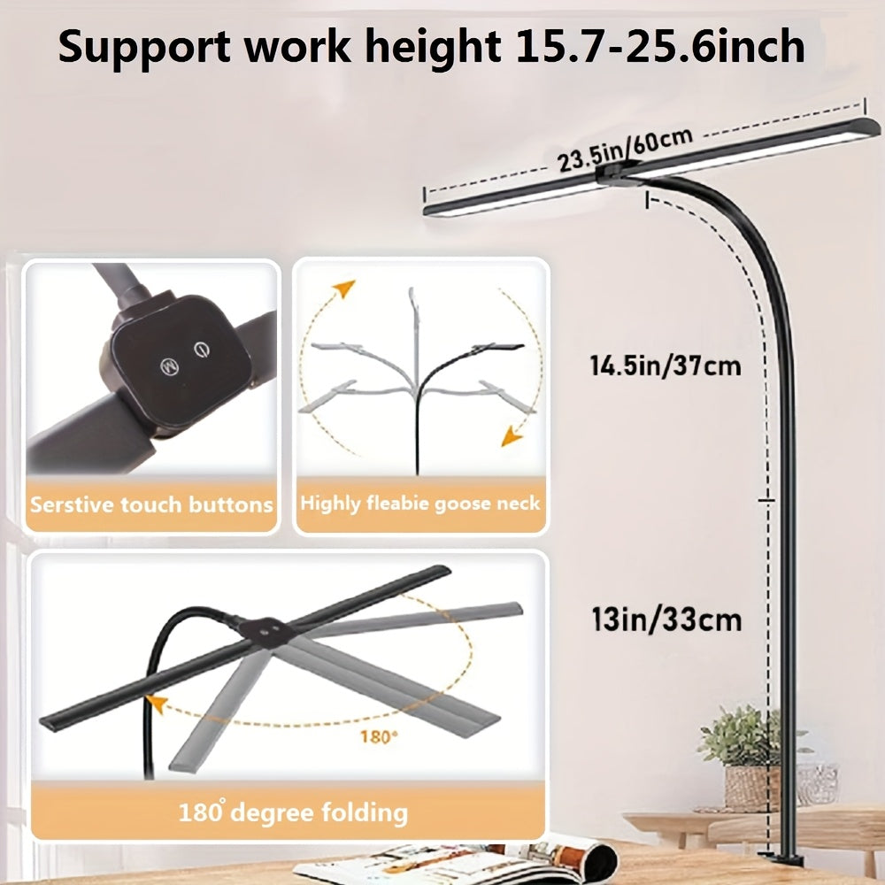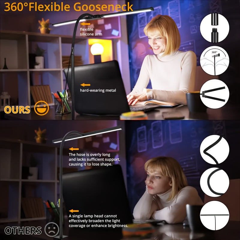 Bring modern lighting to your workspace with this sleek dual-head LED desk lamp. Designed with a flexible gooseneck and touch control, it combines style and functionality to deliver perfect lighting for reading, studying, gaming, and home offices.