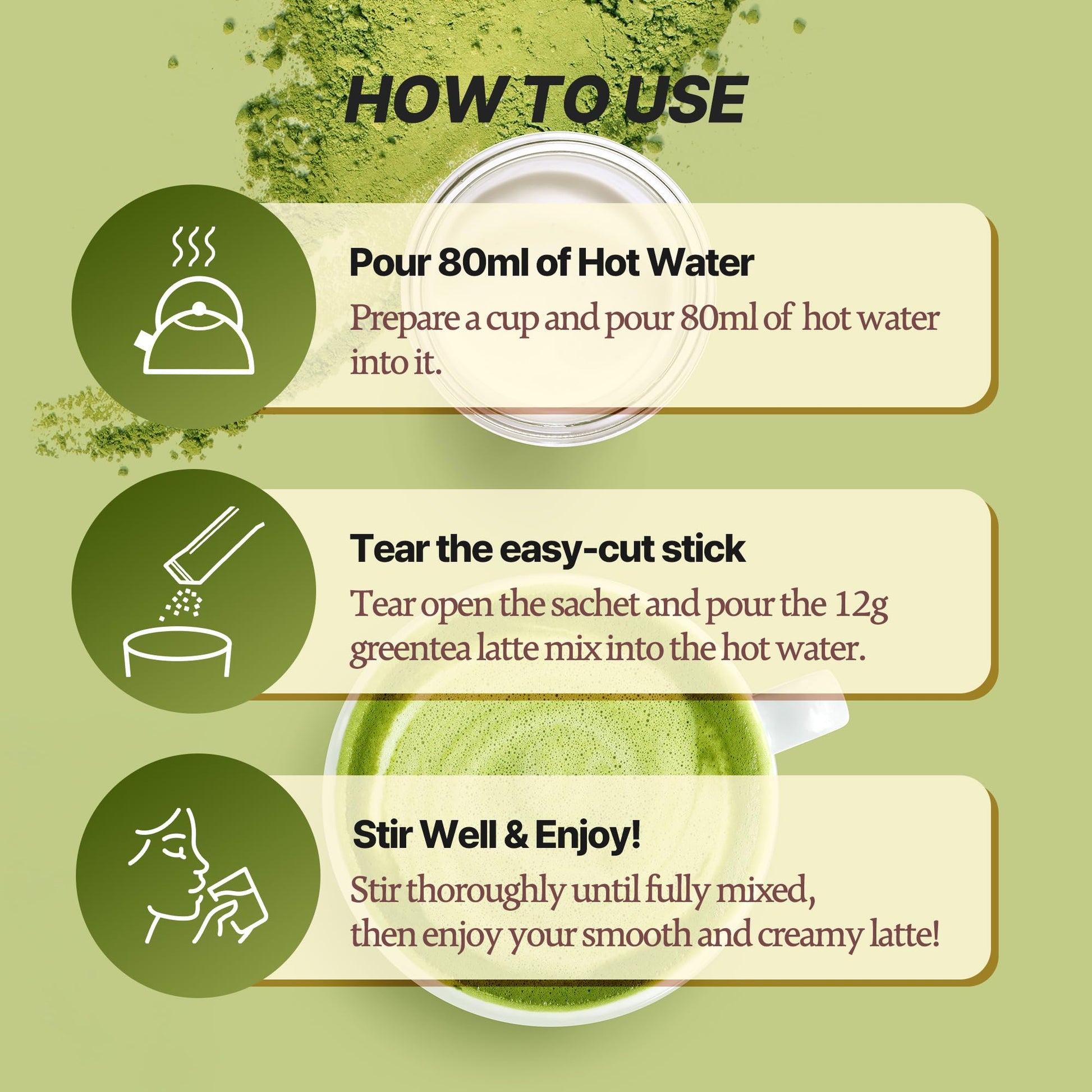 - MATCHA LATTE 10 STICKS – Easy Anytime Treat Includes 10 convenient sticks of creamy green tea latte made with Korean expertise. Perfect for quick prep at home, work, or on the go.