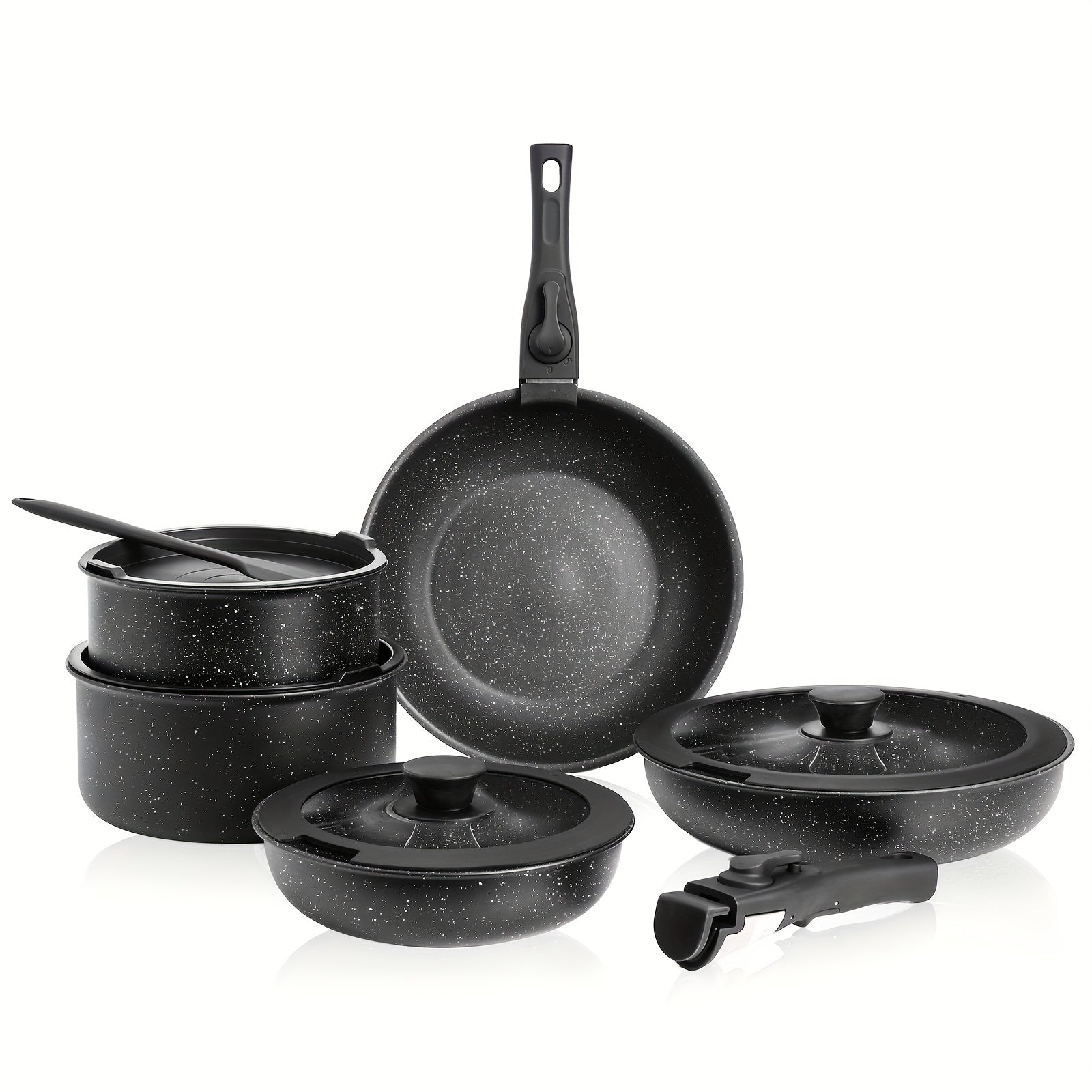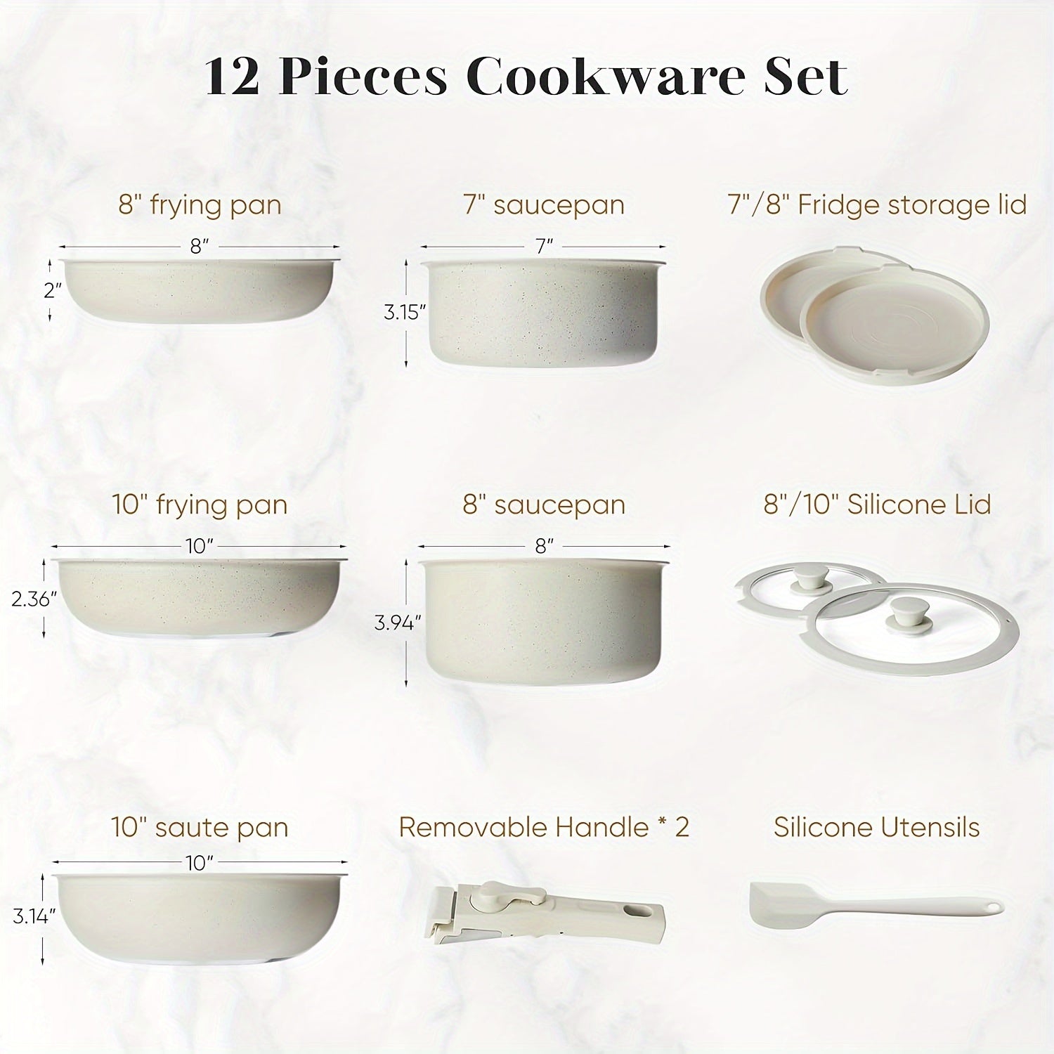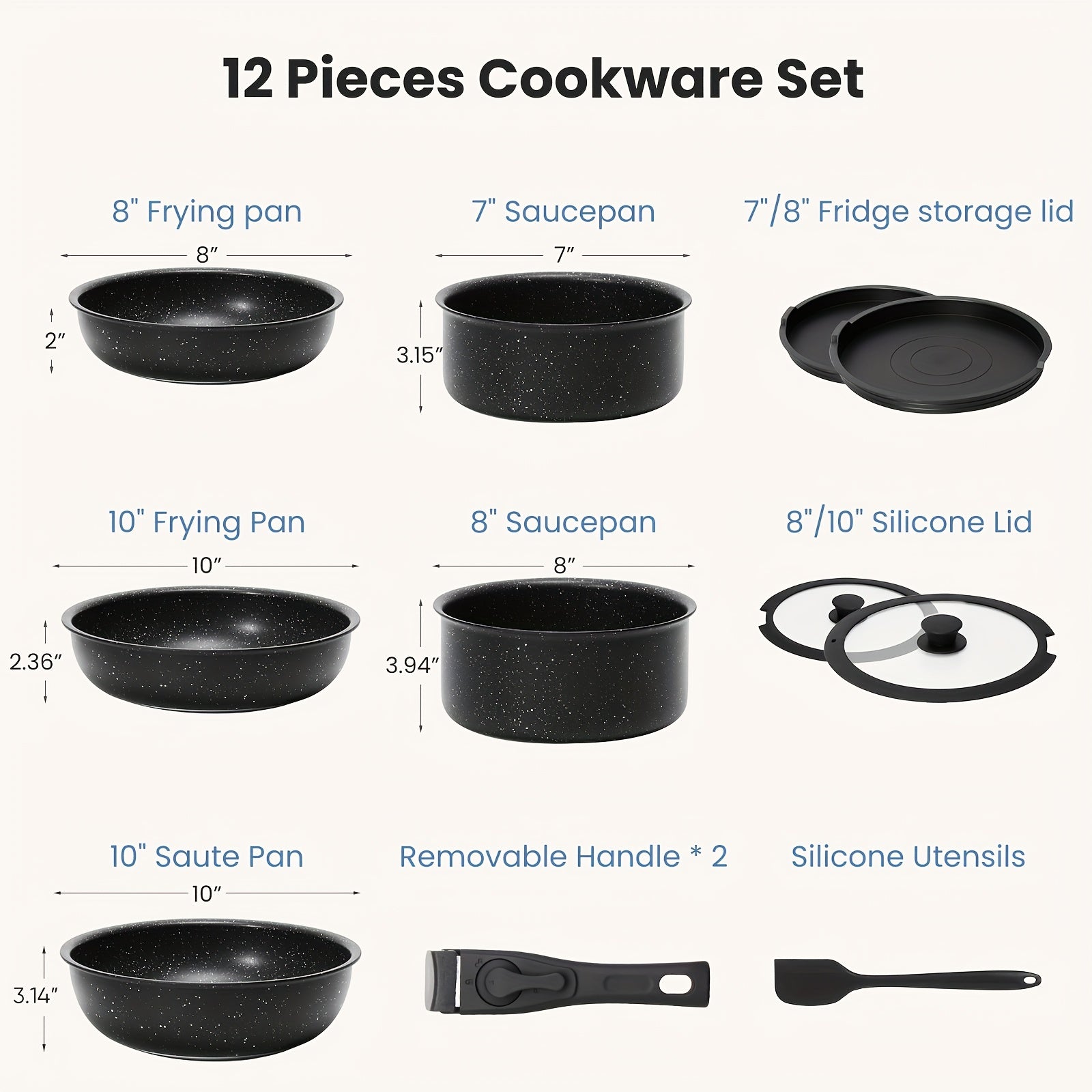 Nonstick 12-Piece Cookware Set with Detachable Handle – Induction & Oven Safe