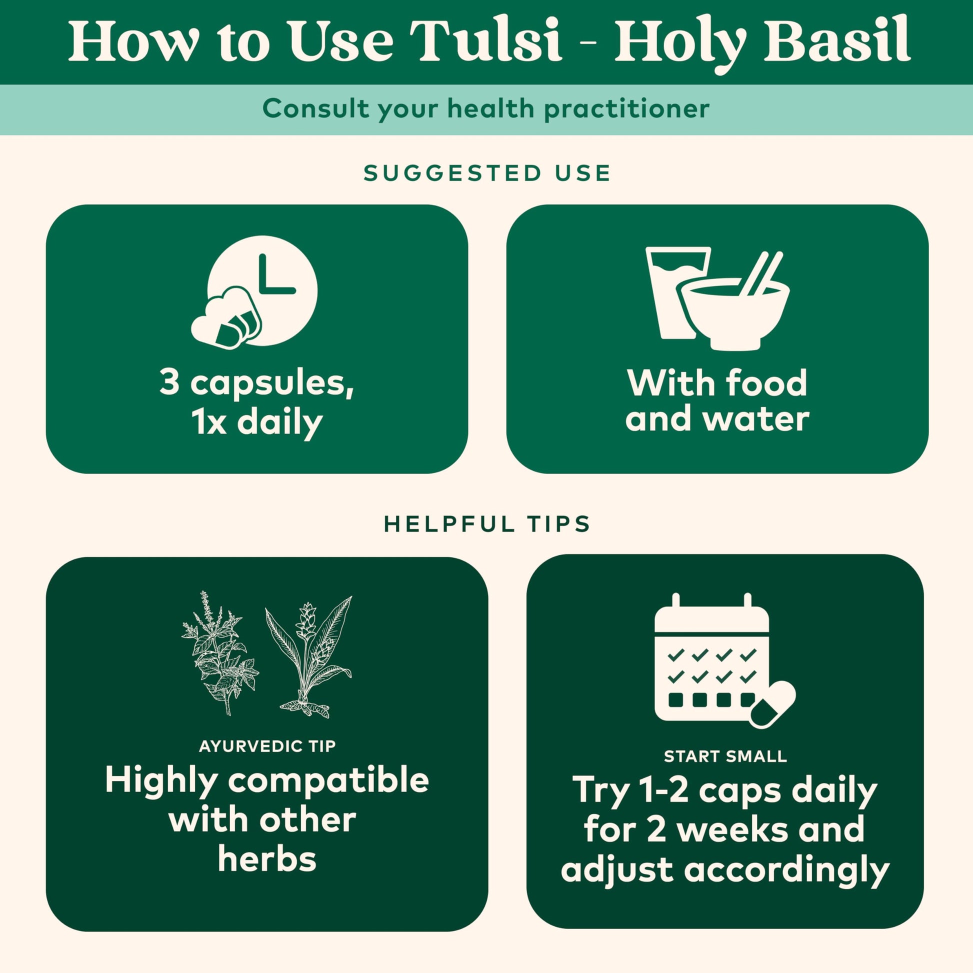 Each capsule is packed with the powerful properties of Tulsi, an adaptogen revered for its ability to relieve stress and enhance immune function. Experience the uplifting effects of this herbal supplement, often referred to as 'liquid yoga,' promoting calm and clarity in your daily life.