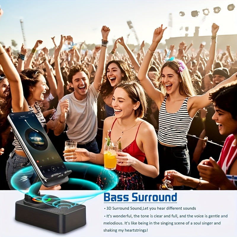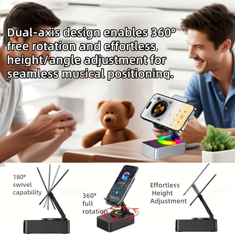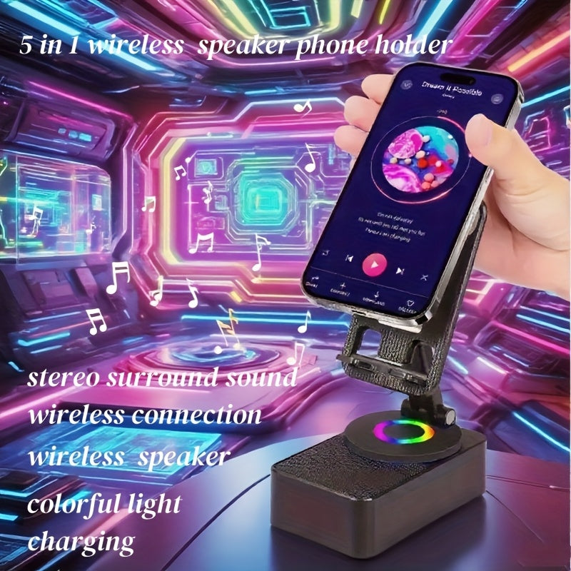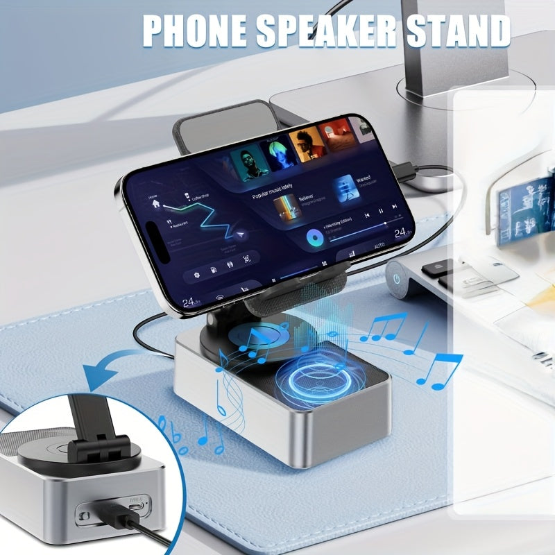 Portable 5-in-1 Wireless Speaker with Phone Holder, 1500mAh, Stereo Sound, Adjustable USB Desktop Stand