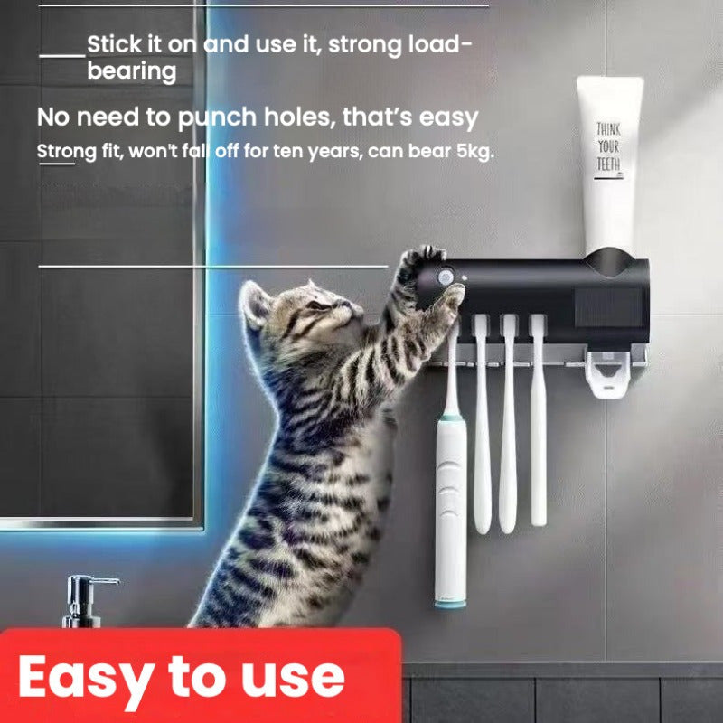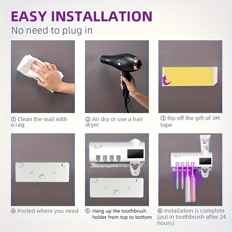 Toothpaste Dispenser & Toothbrush Holder, Wall-Mounted, Hygienic Auto Sensor