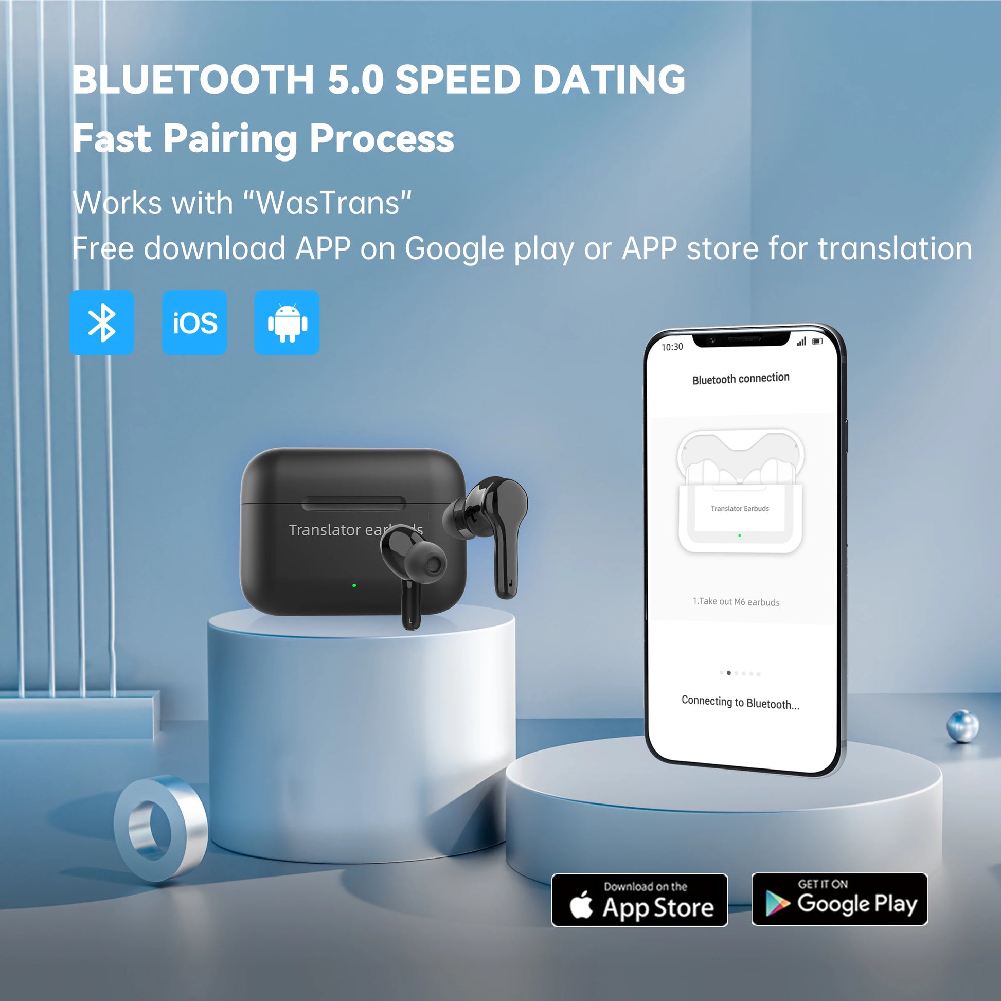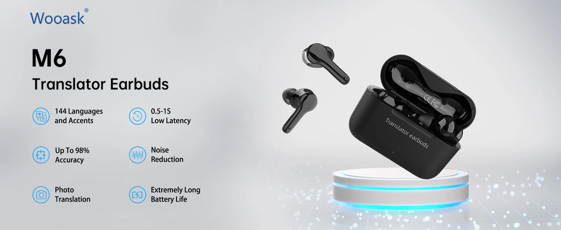 Wooask M6 Translation Earbuds – Real-Time 2-Way Translator, 144 Languages, Offline Support